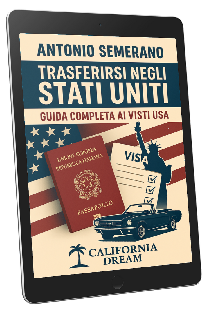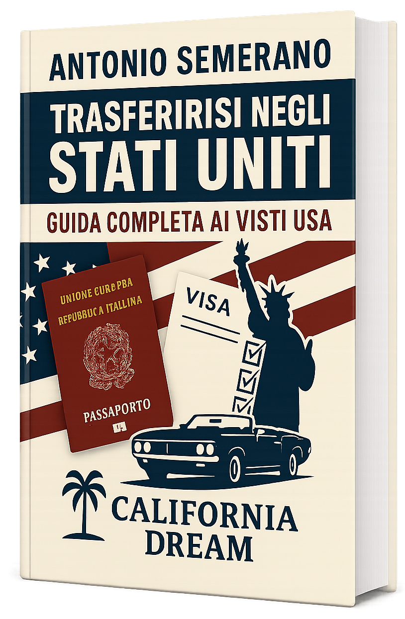 🌴 California Dream – Più di un sogno, un percorso concreto 🌴Benvenuto su California Dream, il progetto editoriale che nasce dall’esperienza di chi, come te, ha avuto il coraggio di fare domande e di cambiare prospettiva.Mi chiamo Antonio, e per anni ho studiato, vissuto e lavorato tra l’Italia e gli Stati Uniti. Ho imparato sul campo quanto possa essere complicato capire le regole americane, tra burocrazia, procedure online, e informazioni frammentate. Ho visto persone scoraggiarsi e rinunciare, convinte che fosse tutto troppo difficile.California Dream nasce per un motivo semplice: aiutarti a fare chiarezza, risparmiarti errori e darti la possibilità di muoverti con sicurezza.Ogni eBook che trovi qui è il frutto di anni di studio, di pratica diretta e di centinaia di conversazioni con professionisti, immigrati, imprenditori e famiglie che hanno scelto di crearsi un futuro in California.Che tu voglia:✅ Trasferirti e vivere legalmente negli Stati Uniti